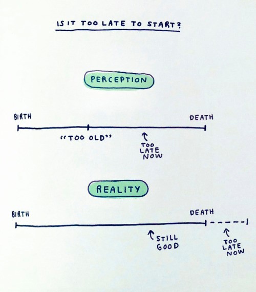 Je pensais que ce vieux projet de faire du kite était mort, mais le contact de l’eau, du vent et de la bonne humeur générale au bord de la lagune ont démontré que le projet était juste en dormance. Les quelques hésitations de la raison (« t’es un peu vieux pour commencer ça el’gros » « Pense à ton REER pour une fois »), m’ont fait pensé à cette illustration de Michelle Rial, vu sur FB quelques jours avant mes vacances: